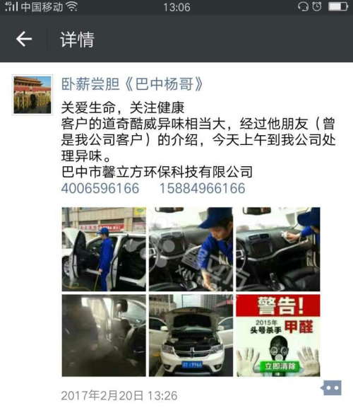 隨著人們的消費觀念在改變,人們也越來越關注自己的汽車環(huán)境。認識到了甲醛的危害,而楊總也抓住了機會,把握住了商機!